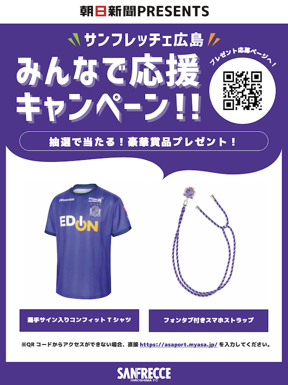 サンフレッチェ広島を応援する朝日新聞とASA(朝日新聞サービスアンカー)より、今シーズンを盛り上げるべく抽選でグッズをプレゼントいたします。
